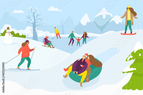 Fisherman using rod catching fish at mountain river bank vector illustration. Fisher man enjoy active lifestyle. Sport hobby and tourism concept