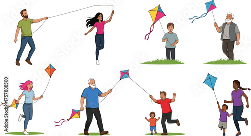Fisherman with rod and fish vector isolated set. Happy fisher illustration. Sport and hobby leisure activity, hunting tourism on river, pond or lake concept