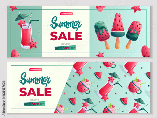 Fishing landing page design, website banner template set, flat vector illustration. Fishing tackle. Fisherman sitting in boat with rod. Outdoor leisure activity, hobby.