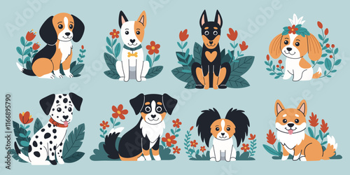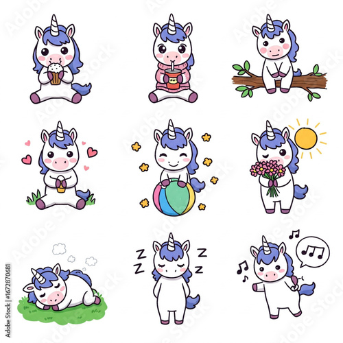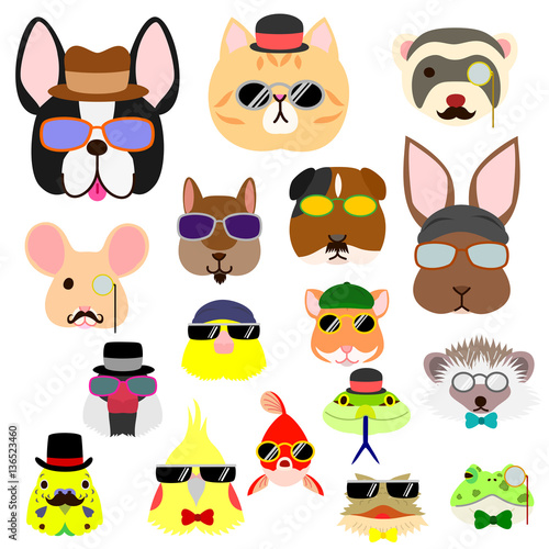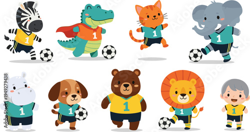 Fitness raccoon panda fox icon set. Vector illustration isolated on white background. Cute animals playing badminton, riding push scooter, exercising with jump rope, hula hoop, dumbbells etc.