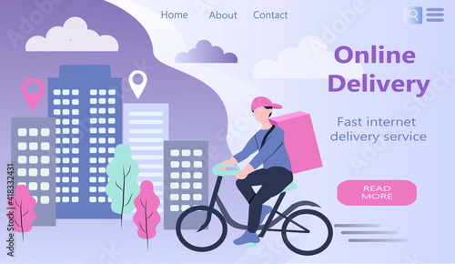 Vector flat illustration of big smartphone with fitness activity tracking app and tiny character cyclist with bicycle. Fitness tracker, smart sports technology concept for web banner, website page.