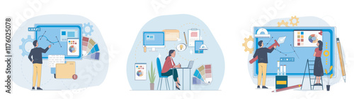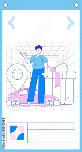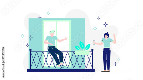 Vector flat illustration of big smartphone with fitness activity tracking app and tiny characters young couple jogging. Fitness tracker and running mobile phone application concept for web banner etc.