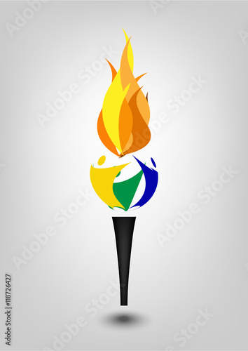 Layered paper cut craft style sport flaming torch silhouette, vector illustration. Sport competition torch relay opening ceremony.