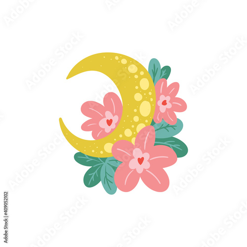 Floral alphabet, vector illustration in paper art style. Q, R, S, T English alphabet capital letters with beautiful exotic tropical leaves and flowers.