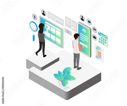 Fluorography, chest xray scan, flat vector isometric illustration. Roentgen photography, chest radiography, lungs checkup.
