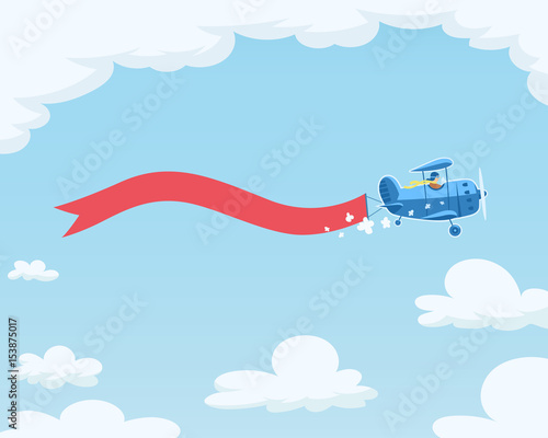 Flying helicopter with empty advertising banner vector concept in paper art origami style. Template for a text web banners, paper cut craft design.