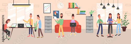 Food additives research, vector flat illustration. Scientists working in biotechnology lab. Food additives study. Genetic engineering. Genetically modified foods, gene technology.