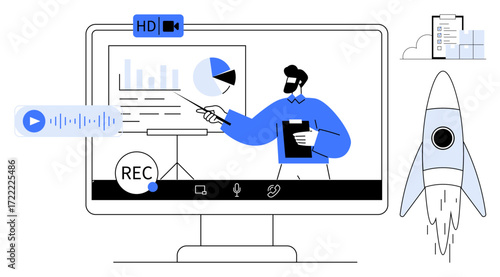 Food blogger creating content vector. Woman recording culinary video on camera for channel in social media. Online cooking course