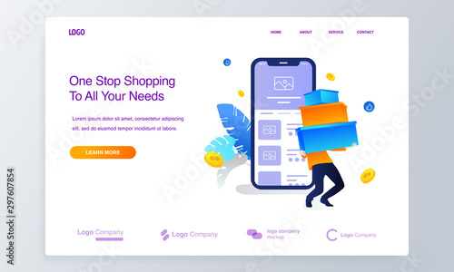 Food delivery vector website template, web page and landing page design for website and mobile site development. Order food online via smartphone and delivery service.