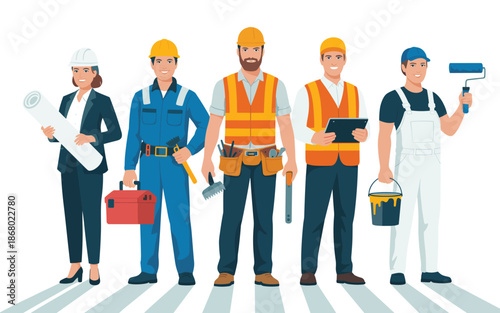 Fast food restaurant people vector illustration. Chef or cook, waiter, waitress, delivery man and visitor male with pizza. Food people flat cartoon characters isolated on white background.