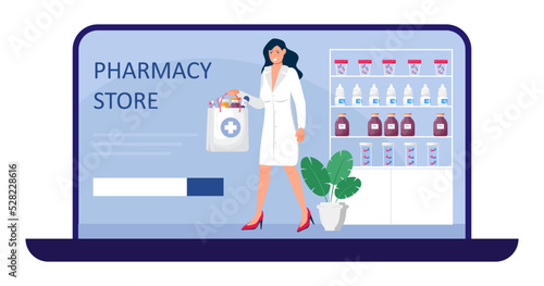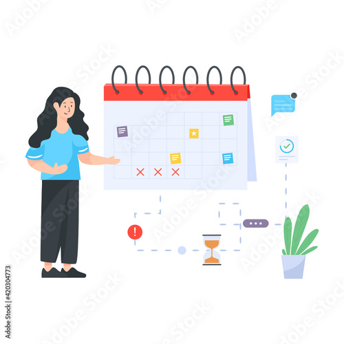 Vector illustration of waitress holding fast food restaurant menu. Food people flat style design element, icon isolated on white background.