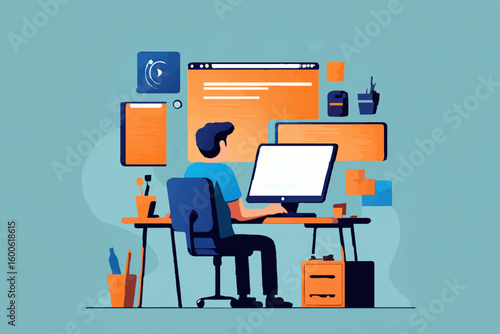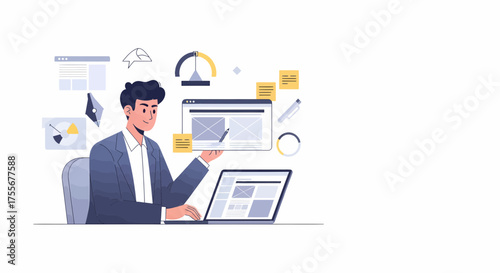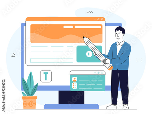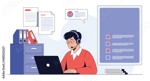 Vector illustration of fast food restaurant worker saleswoman taking order. Food people flat style design element, icon isolated on white background.
