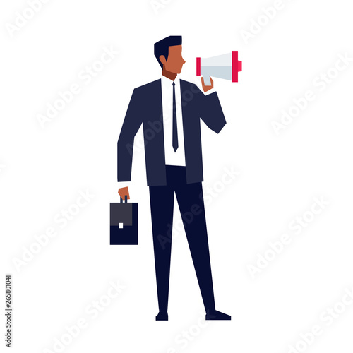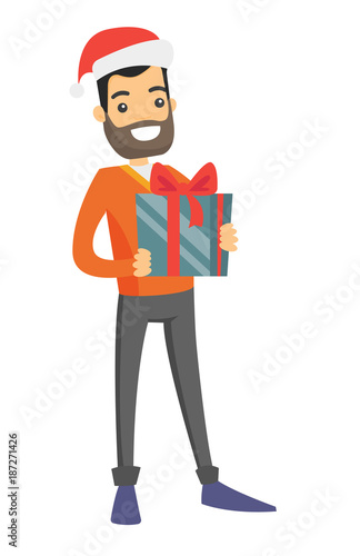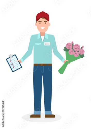 Vector illustration of courier with red delivery bag. Home delivery concept. Food people flat style design element, icon isolated on white background.
