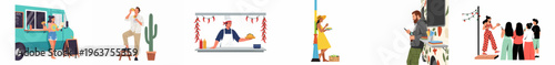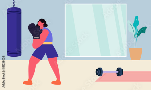 Vector illustration of man standing with arms raised and holding ball. Father watching football on tv in living room. Flat style design.