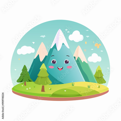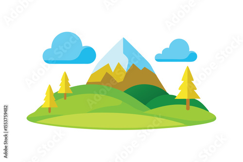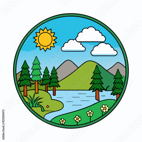 Summer forest camping background paper art style. Camp on river 3d vector design over mountain banner. Travel poster. Adventure on nature
