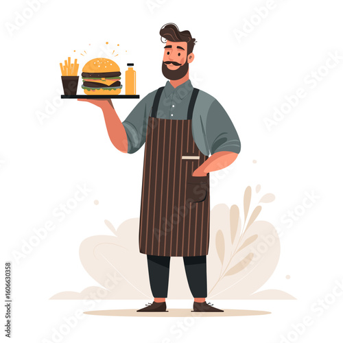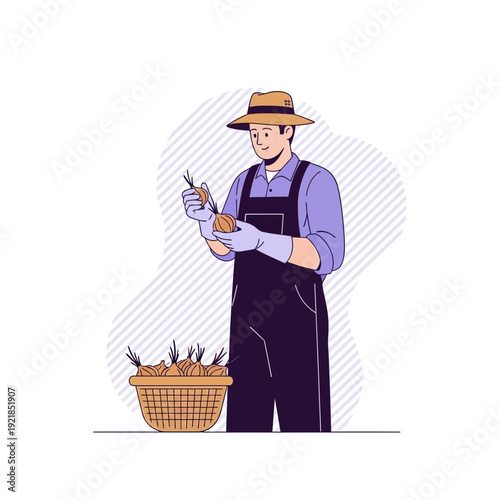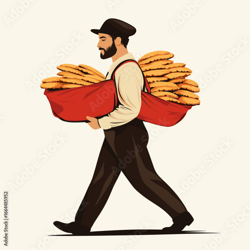 Fortune man holding hat of gold money coin vector icon isolated on white background