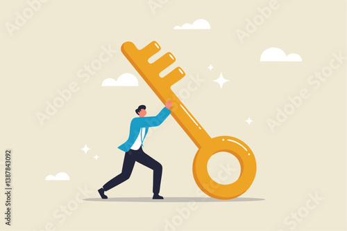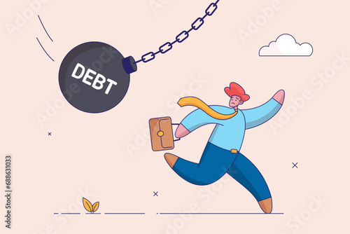 Fortune man pushing wheelbarrow with money bag vector icon isolated on white background