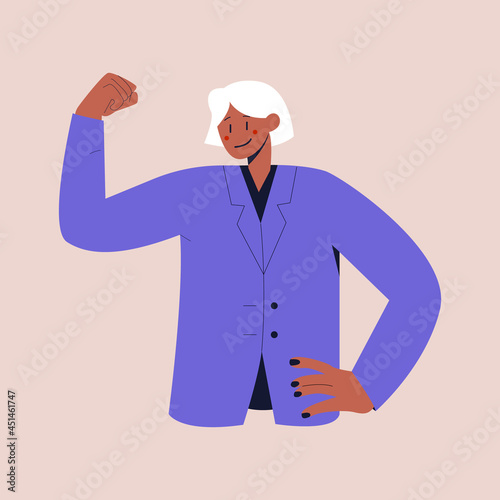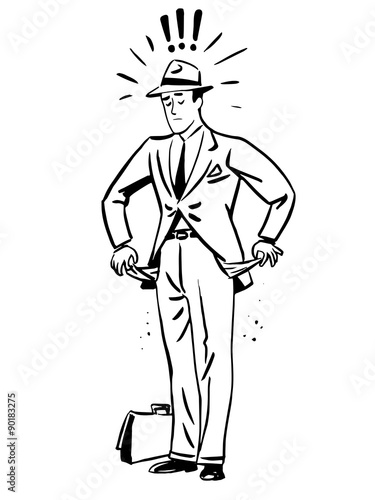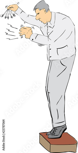 Fortune successful man holding foot on gold money coin stack vector icon isolated on white background