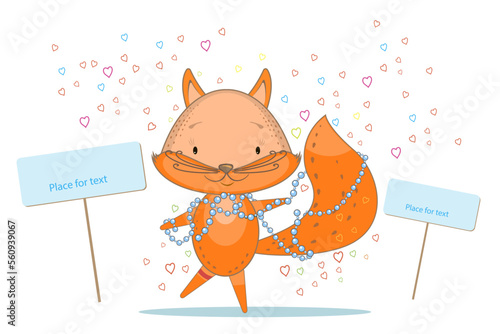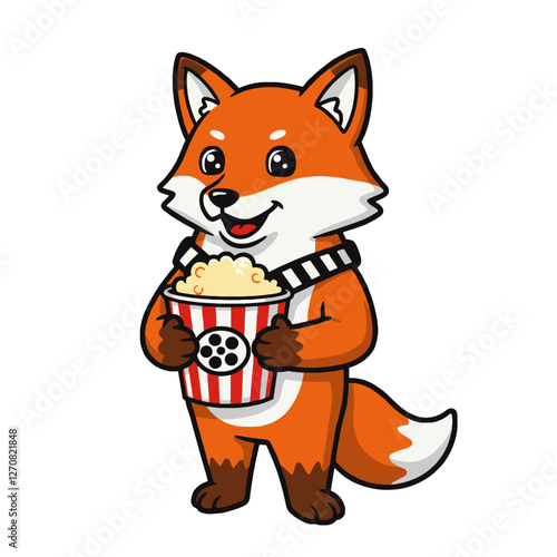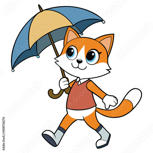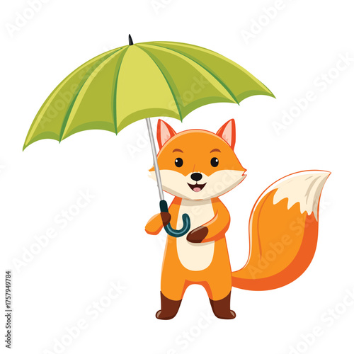 Fox flying on umbrella cute vector. Happy wild red animal illustration. Funny cartoon autumn character flat icon isolated on white background