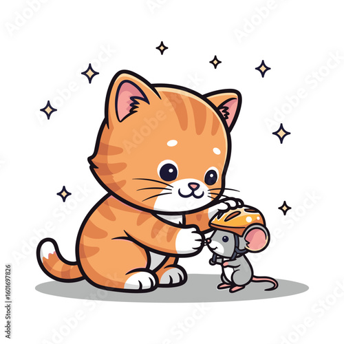 Fox and parrot vector. Cute animal and bird icon. Funny characters playing together having fun isolated on white background