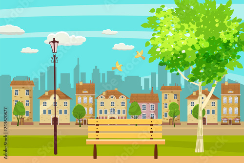 Free Wi-Fi zone in the park concept vector illustration. People using internet smart phones while sitting on bench, walking along the street. Flat style design.