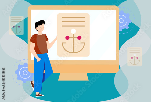 Freelance. Young man working from home lying on bed, flat vector illustration. Freelancer male character working on laptop computer in bedroom. Remote work, distance education, online learning.