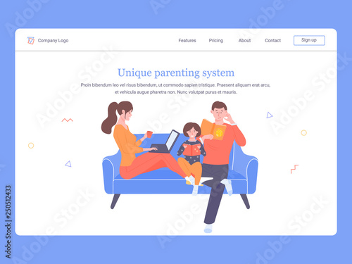 Work at home concept. Freelance girl develops project in home office. Cat sits on a chair. Vector web site design template. Landing page website concept illustration.