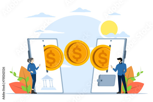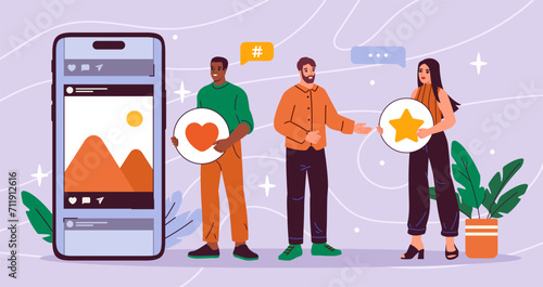 Fresh and healthy fruit and veg market stalls with male and female characters sellers and buyers, vector illustration. Bazar, online farmers market concept for web banner, website page etc.