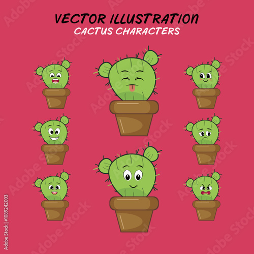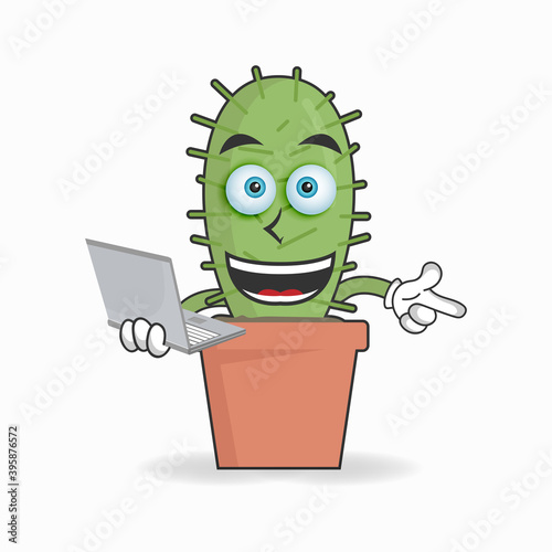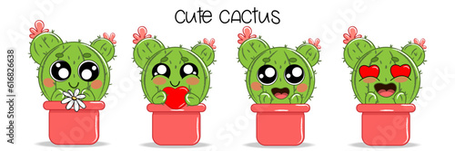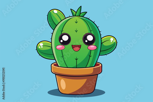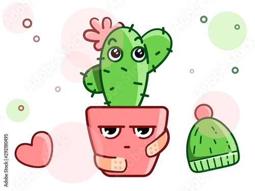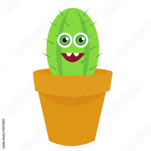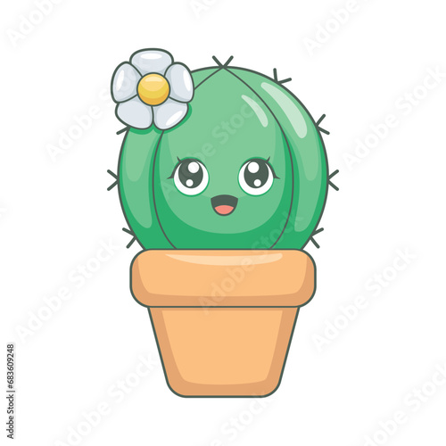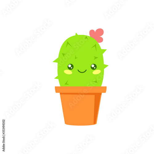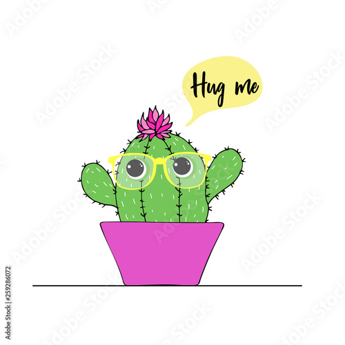 Cactus vector. Funny succulent plant nerd mascot with yellow blossom flower cartoon illustration. Cute cacti face with positive smile wearing eyeglasses in flowerpot isolated on white background