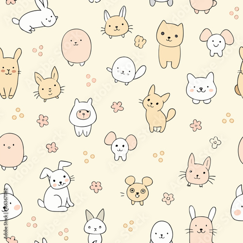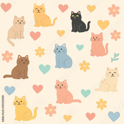 Funny cats vector seamless pattern. Creative design with happy playful cats for fabric, textile, wallpaper, wrapping paper.