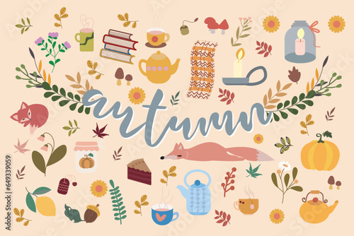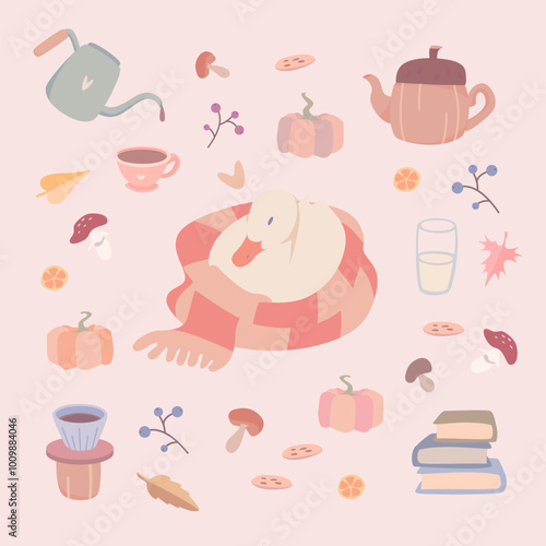 Funny cats vector seamless pattern. Creative design for fabric, textile, wallpaper, wrapping paper with happy cats eating, sleeping, taking bath.