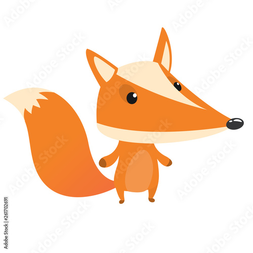 Funny fox vector. Cute forest animal cartoon icon. Comic woodland character with red tail hunting isolated on white background