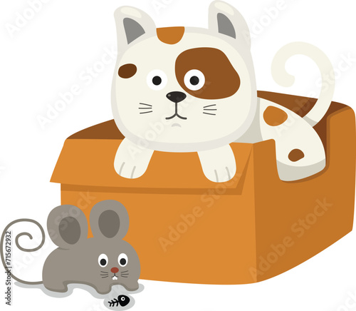 Funny travel pets sitting in luggage bag suitcase vector illustration. Kawai puppy, kitten in Mexican hat holding maracas and serious mouse traveler. Domestic animals tourist