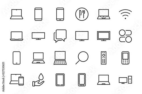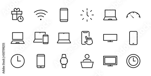 Gadgets and technology icons set, linear style. Vector illustration in simple line design
