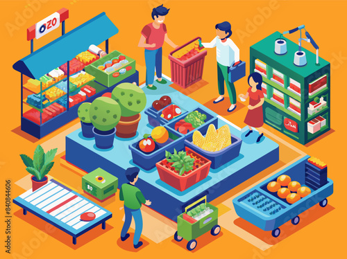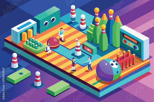 Game club vector flat 3d isometric illustration. Cutaway interior with amusement arcade game machines, video arcade and table games concept design elements.