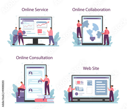 Game vector website template, web page and landing page design for website and mobile site development. Cyber sport concept with big computer and tiny people gamers playing online football tournament.