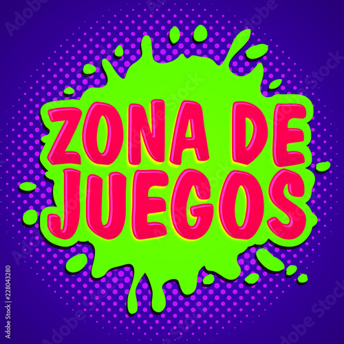 Game zone label vector. Child party room icon. Kid fun area, playground for children leisure entertainment and activity badge illustration. Cartoon round shape design isolated on white background