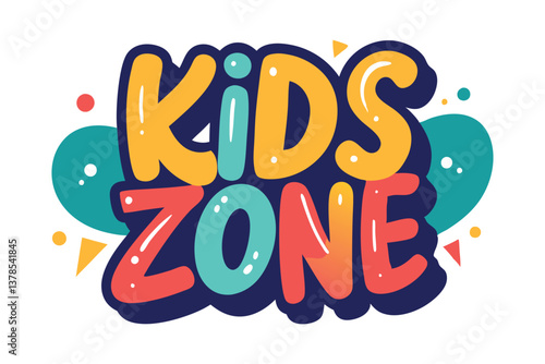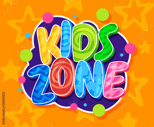 Game zone label vector. Child party room icon. Kid fun area, playground sticker illustration. Place for children leisure entertainment and activity badge. Cartoon star design isolated on white background