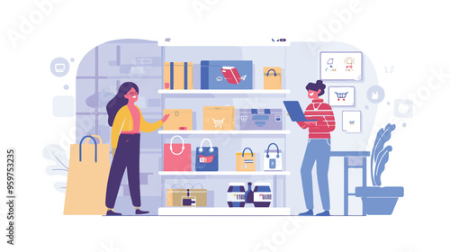 Garage sale app to shop and sell used clothes and items, flat vector illustration. Online flea market.