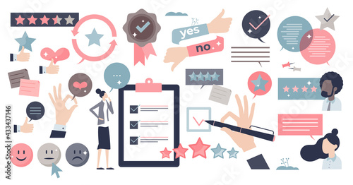 Garage sale vector illustration. Flea market on yard. Old unnecessary things selling. Woman customer character choosing items on outdoor bazaar isolated on white background