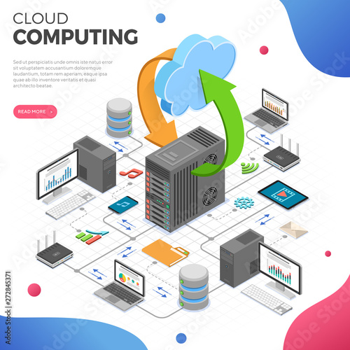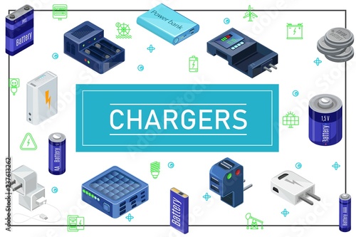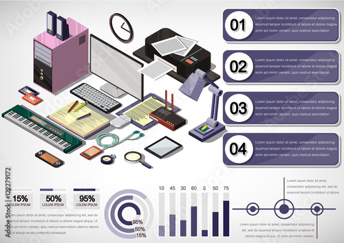 Garbage sorting infographics, vector illustration. Isometric household waste dump and green, gray, orange recycle bins for glass, organic and plastic trash resp. Waste separation.