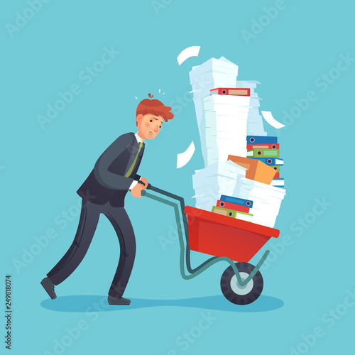 Gardener man with wheelbarrow. Vector flat style design illustration isolated on white background. Gardening concept for web banner, website page etc.