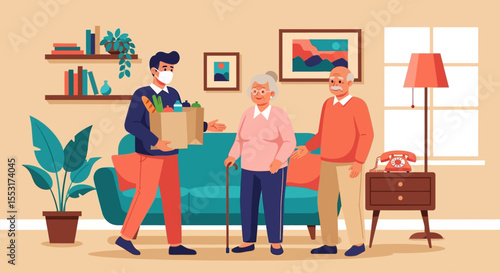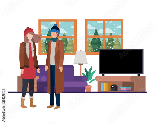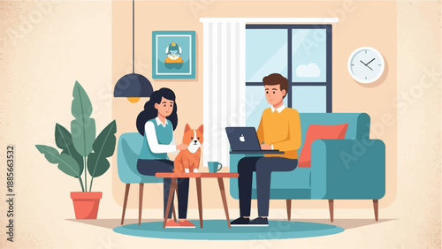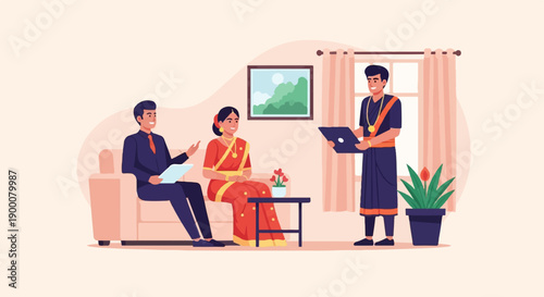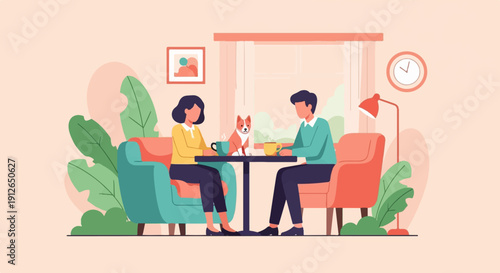 Vector illustration of woman giving pliers to worker standing next to stove in kitchen. Gasman concept flat style design.