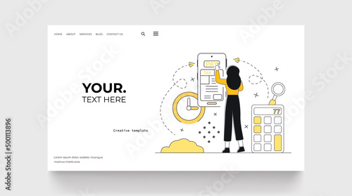 Gender gap vector website template, web page and landing page design for website and mobile site development. Man and woman balancing on scales with money. Gender wage inequality, injustice.