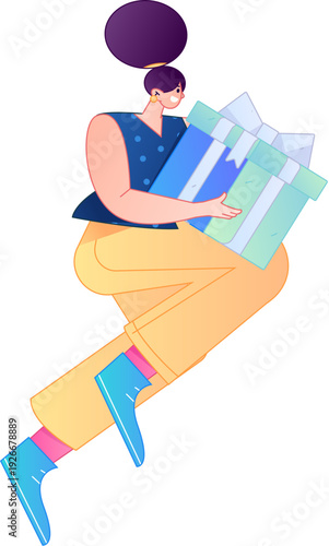 Gentleman character reading book sitting on stool vector icon isolated on white background.