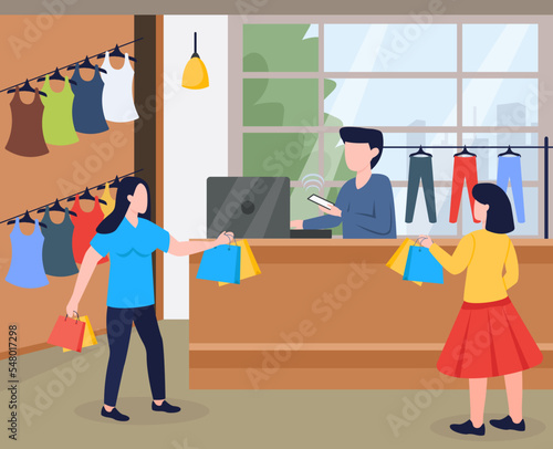 Vector illustration of two men having dinner at restaurant. Gentlemen in restaurant concept design element in flat style.