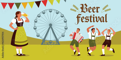 Georgian traditional cuisine, vector illustration. Micro male characters cooking huge cheese. Georgian food cheese making composition for web banner, website page etc.