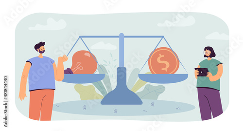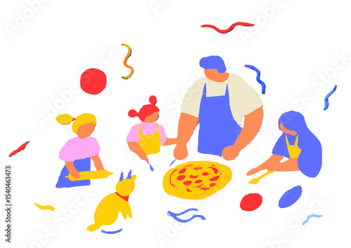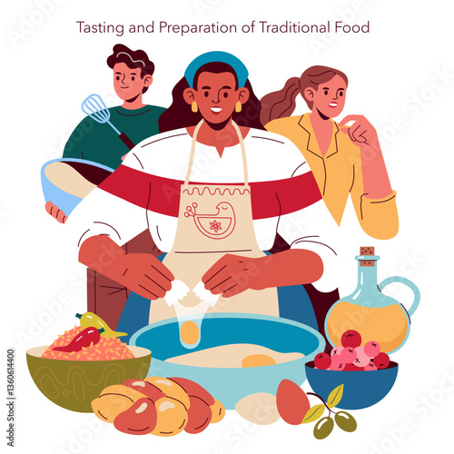 Georgian traditional cuisine, vector illustration. Micro male characters cooking huge khinkali. Georgian food restaurant composition for web banner, website page etc.
