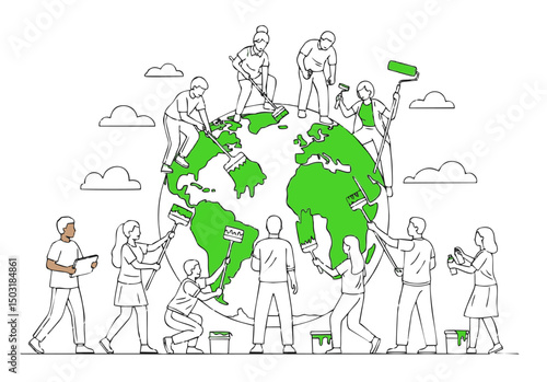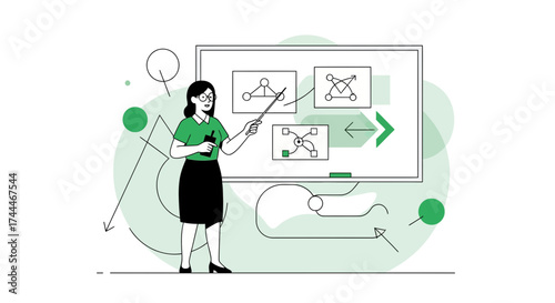 Girl artist painting on canvas using easel, vector illustration in paper art style. Young woman painter holding palette and drawing picture with paintbrush. Creative profession.