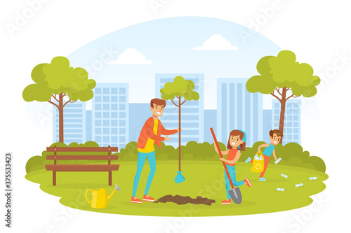 Girl at the computer in the middle of lake in nature environment. Remote work and self isolation vector illustration. Business office away from home and city. Woman with laptop floating on a raft.